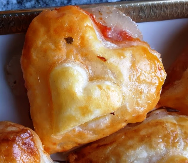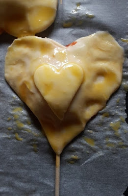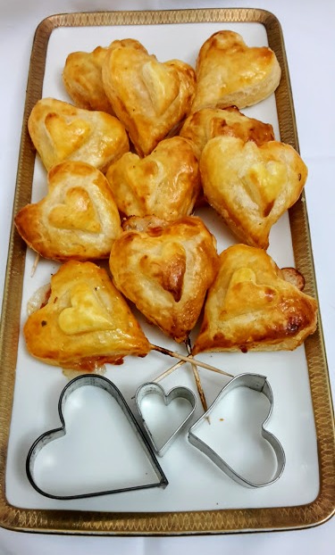 Incidere con un tagliabiscotti a forma di cuore, nel mio caso, la pasta sfoglia..