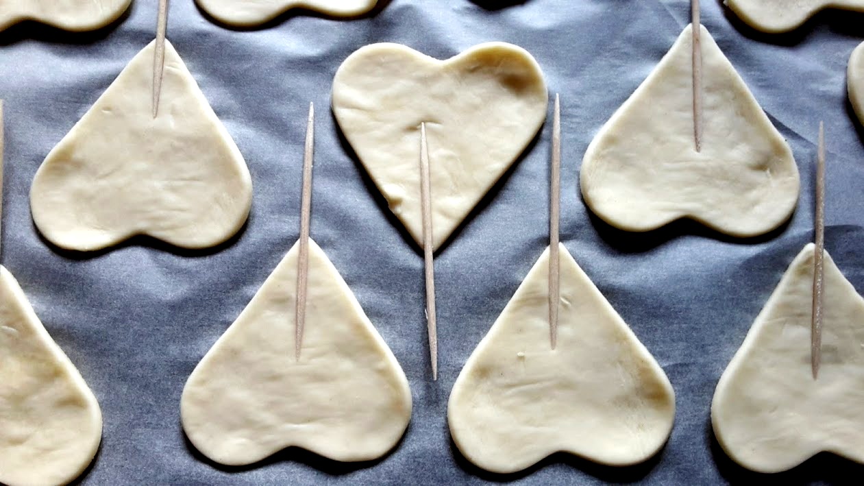 Incidere con un tagliabiscotti a forma di cuore, nel mio caso, la pasta sfoglia..