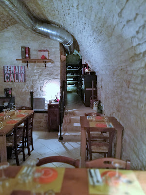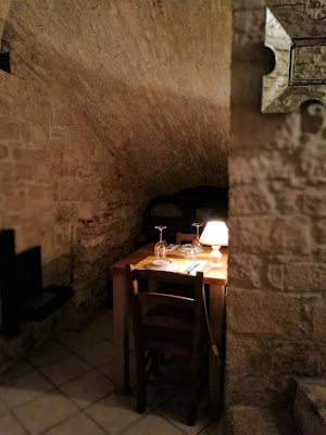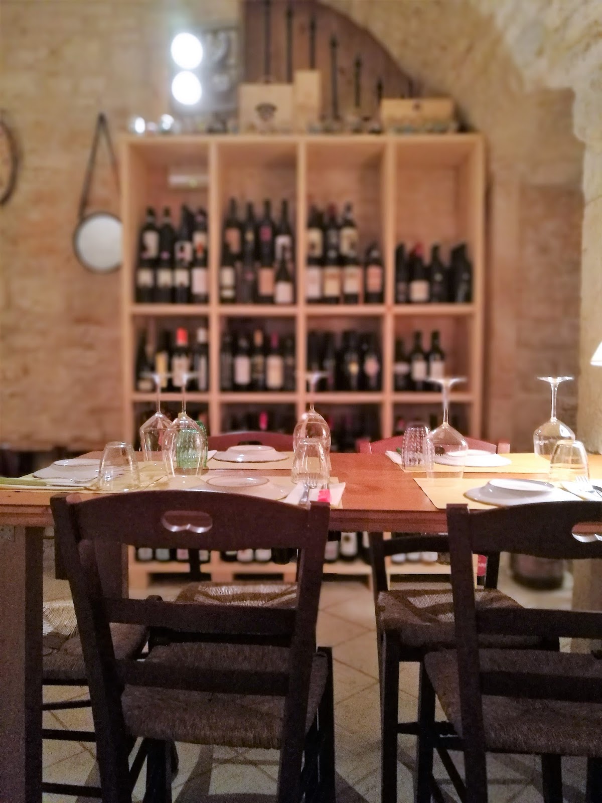 Il locale è situato in un vecchio convento di monache di clausura. Le pareti e i soffitti sono in pietra. Grazie al gioco di luci, e alla disposizione di alcuni coperti il locale si offre sia a serate “romantiche” sia conviviali e di gruppo, insomma è difficile rimanere indifferenti ad un primo sguardo del posto. Una delle particolarità, che ci è piaciuta molto, è quella della cantina accessibile direttamente al cliente, che grazie ad una torcia può scegliersi la bottiglia da consumare durante la serata.