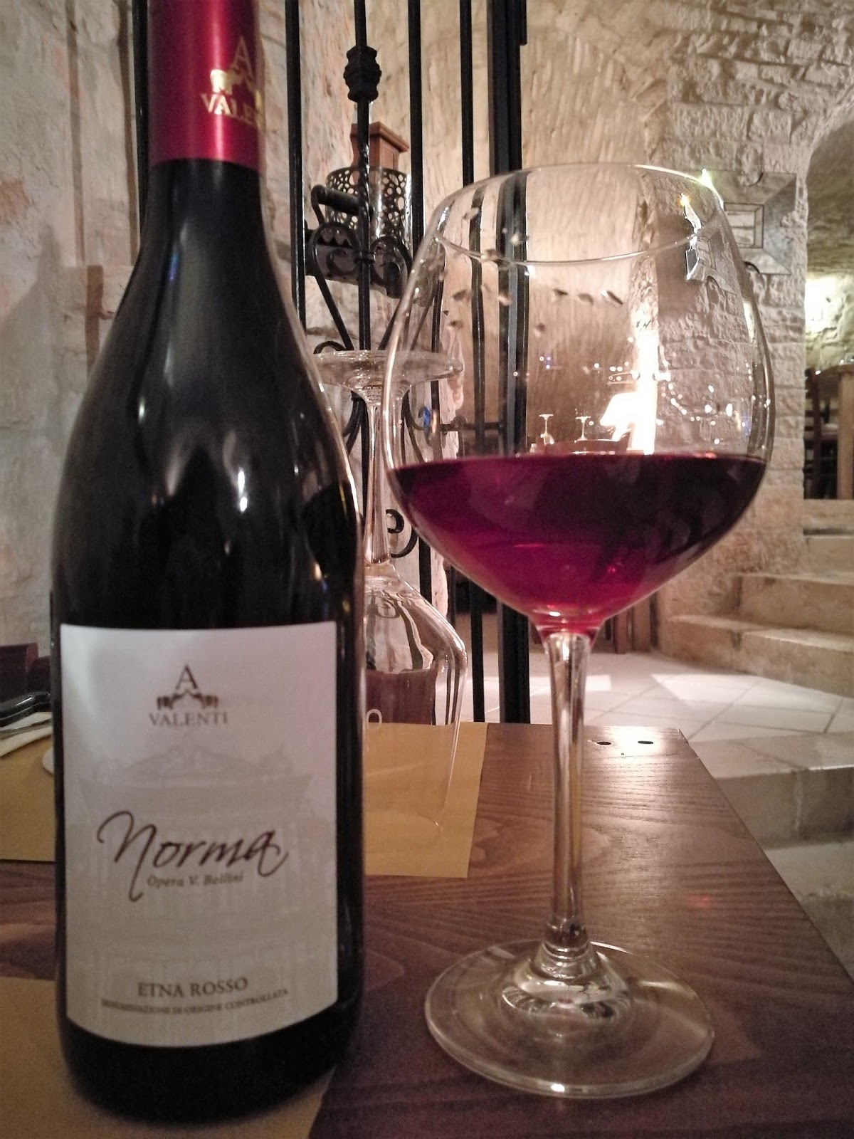 Dopo alcune curiosità sul locale e una visita esplorativa ( in fondo le foto) ci siamo fatti consigliare, e abbiamo deciso di aprire un vino siciliano, un nerello mascalese “NORMA” della cantina Valenti.