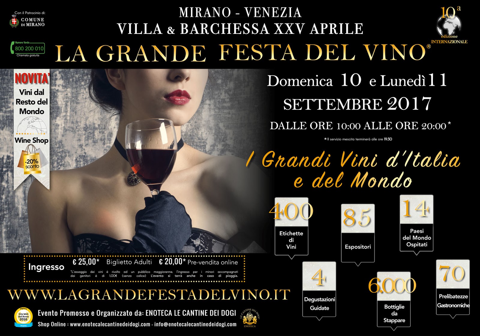 Anche quest’anno la festa si terrà nel Veneto, precisamente a Mirano in provincia di Venezia; i protagonisti dell’evento saranno ben 85 produttori i migliori a livello nazionale e mondiale.