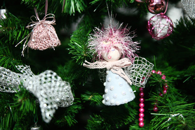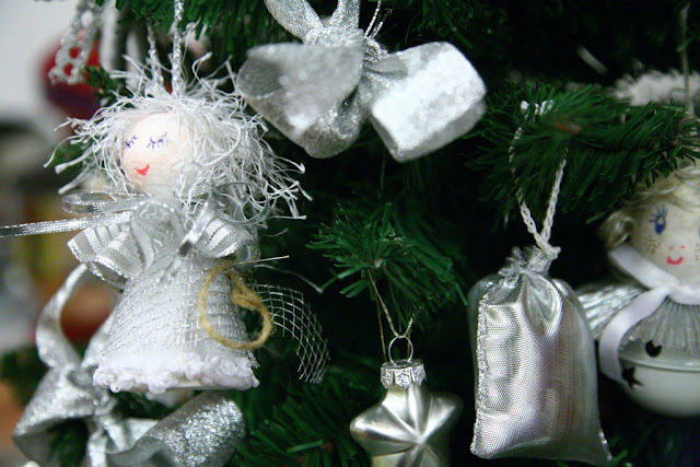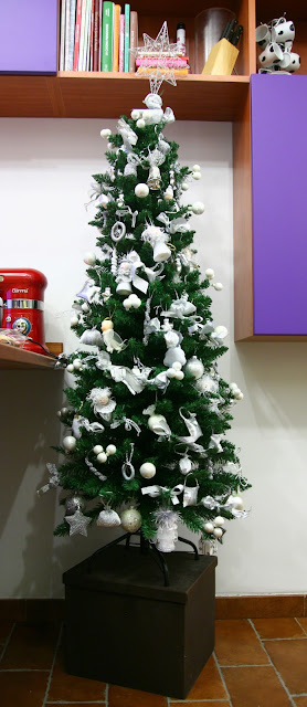 Anche questo ha molte decorazioni fatte a mano e molti angioletti, anche se a differenza degli altri ha anche tante palline di vetro bianche e argento. Sembra strano, ma ogni volta che vedo una pallina bianca mi viene in mente la neve e quindi la associo al Natale.