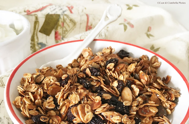 Una colazione sana preparata con granola, accompagnata da una fonte proteica come latte e yogurt (anche nella versione vegetale) è un mix completo per cominciare la giornata con energia e anche una scelta sana per prevenire infiammazioni, problemi cardiovascolari, ridurre il colesterolo e rafforzare il sistema immunitario. Quindi, in conclusione, per uno stile di vita sano senza dover spendere soldi inutili in prodotti da colazione vegan, bio, ecc. e/o integratori preparate in casa una grande scorta di granola per tutta la famiglia!!!
