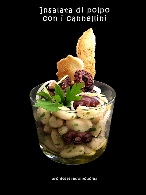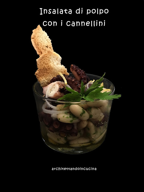 E’ passato un altro mese ed il Club del 27 torna puntuale come un’orologio svizzero. Non vi spiegherò per l’ennesima volta di cosa si tratta (ma vi inserisco il link) passo subito al tema di questo mese cioè le insalate . Quella che ho desiso di provare è l’Insalata di Polpo con Cannellini di Milena Scalambra del blog La scimmia cruda perchè da anni non bollo più il polpo, o meglio, lo faccio bollito senz’acqua. Sono talmente soddisfatta di questa ricetta che non ho più voluto provarne altre quindi questa volta farò un’eccezione, perchè non è una semplice bollitura in acqua, ma in acqua e aceto e quindi voglio fare questo esperimento. Sono proprio curiosa di assaggiare.