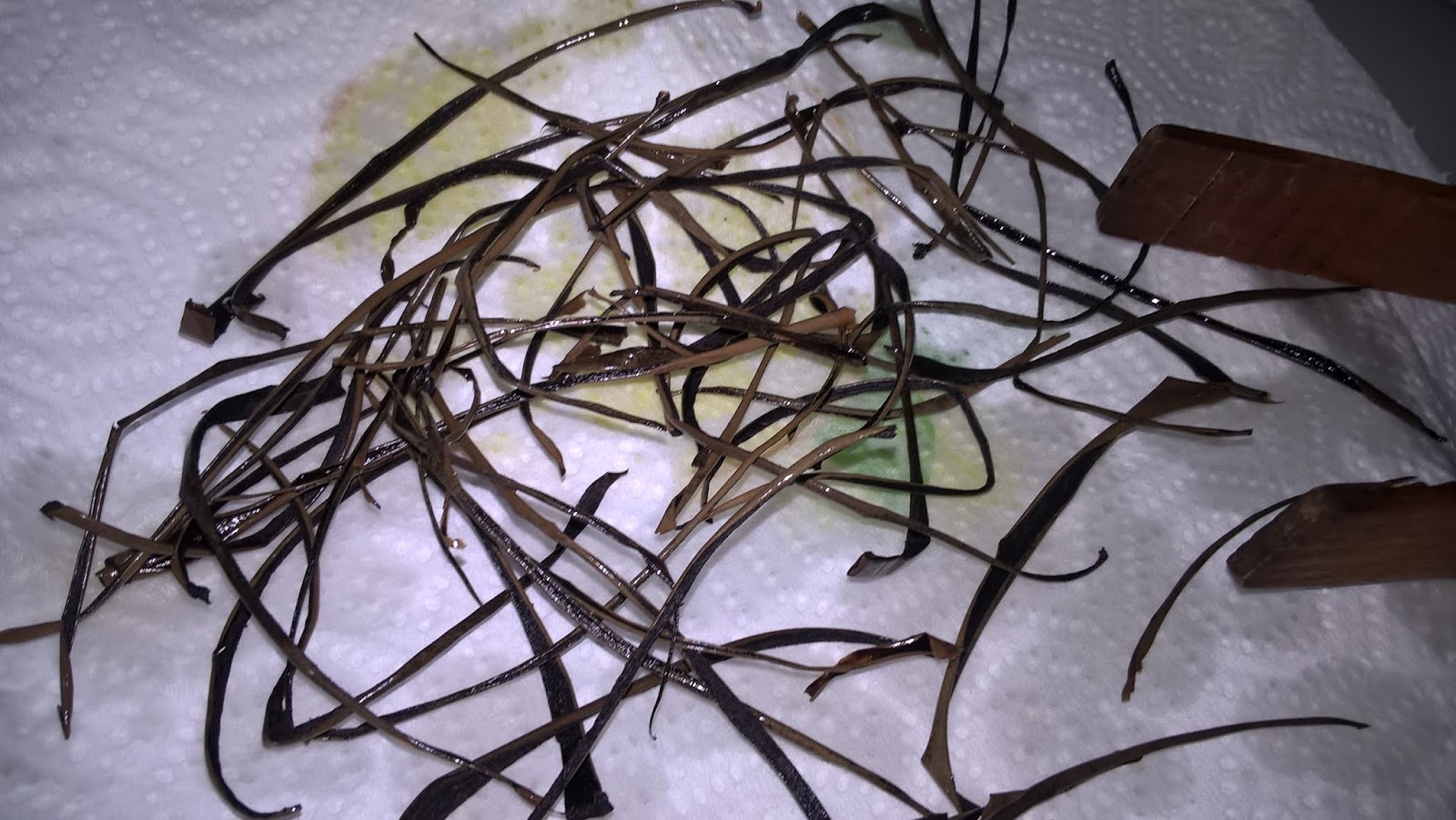 Mi preparo ad impiattare: sistemo gli spaghetti sul piatto e decoro con le melanzane, il basilico, la ricotta e i filetti di bucce.