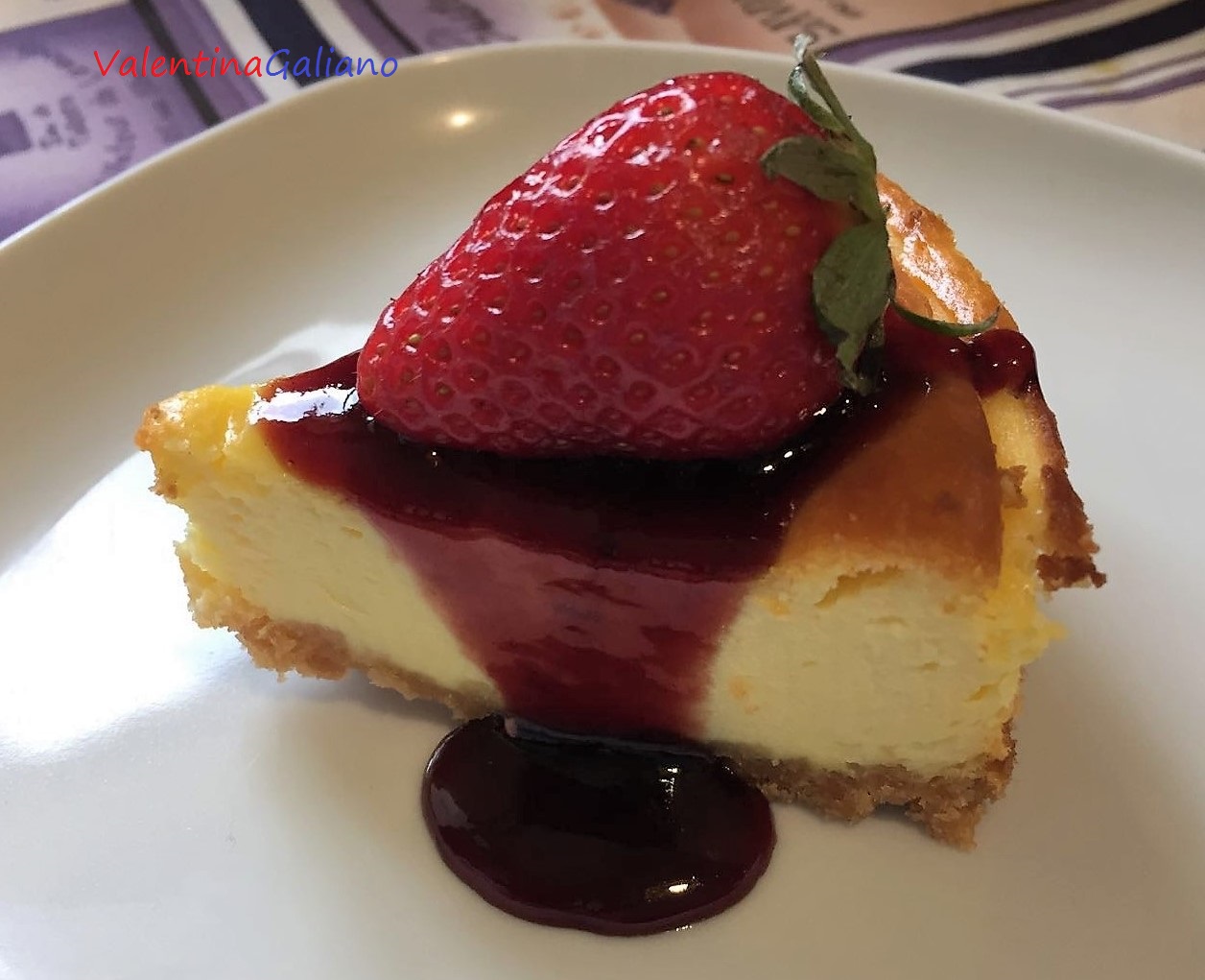 Triturate con un mattarello i biscotti secchi ponendoli in sacchetto gelo. Ponete il trito di biscotti in una ciotola e unitevi il burro sciolto (1 minuto al microonde). Intanto foderate con carta forno il fondo di una teglia a cerchio apribile del diametro di circa 22 cm. Mescolate con cura i biscotti con il burro, quindi distribuiteli sul fondo della teglia e livellateli. Ponete la teglia coi biscotti in freezer per circa 20 minuti. Intanto preparate la crema versando in una ciotola capiente le uova intere e lo zucchero. Frustate con una frusta a mano uova e zucchero, quindi aggiungete la vanillina, il formaggio spalmabile, la Maizena e il succo di mezzo limone. Lavorate questa crema con la frusta fino ad ottenere una bella consistenza omogenea e senza grumi. A questo punto versatela sulla teglia con la base di biscotti e livellatela per bene con un cucchiaio. Lasciate scaldare il forno a 160 gradi (io ho usato un forno ventilato) e cuocete la vostra cheesecake per circa 60 minuti, osservandone di tanto in tanto la cottura. Dovrà risultare bella dorata in superficie. Dopo la cottura spegnete il forno e lasciatela freddare li’ stesso. Dopo circa 10 minuti toglietela dal forno e fatela raffreddare completamente all’esterno. Quando sarà abbastanza fredda, ponetela in frigorifero per circa 20 minuti.