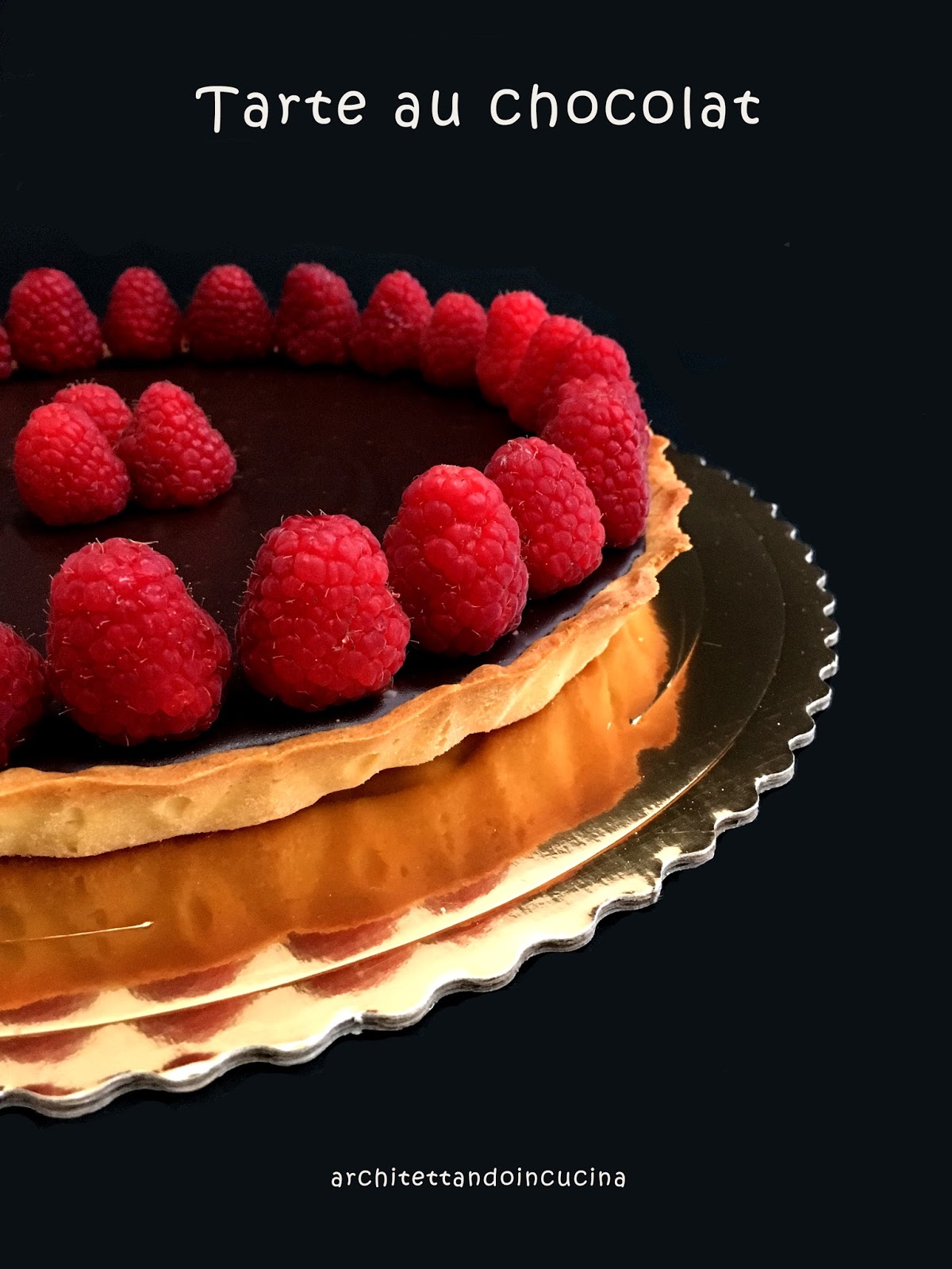 L’autore della ricetta è Frèdèric Cassel (noto pasticcere della brigata di Hermé) e questa tarte è davvero fantastica, con un guscio croccante e friabile di pasta frolla sablée alle mandorle ed un ripieno morbido, fondente, liscio al palato.