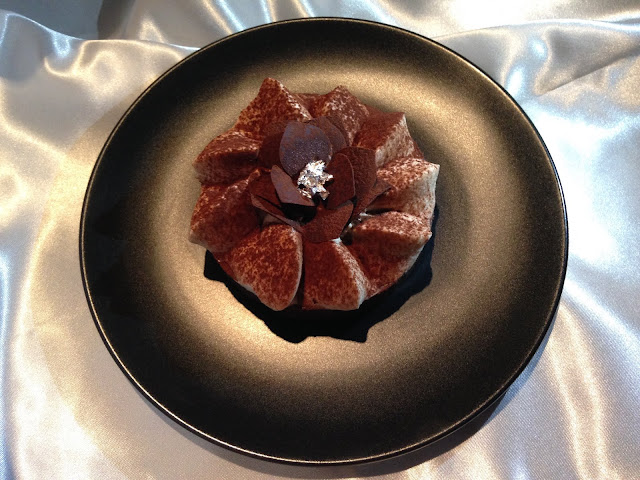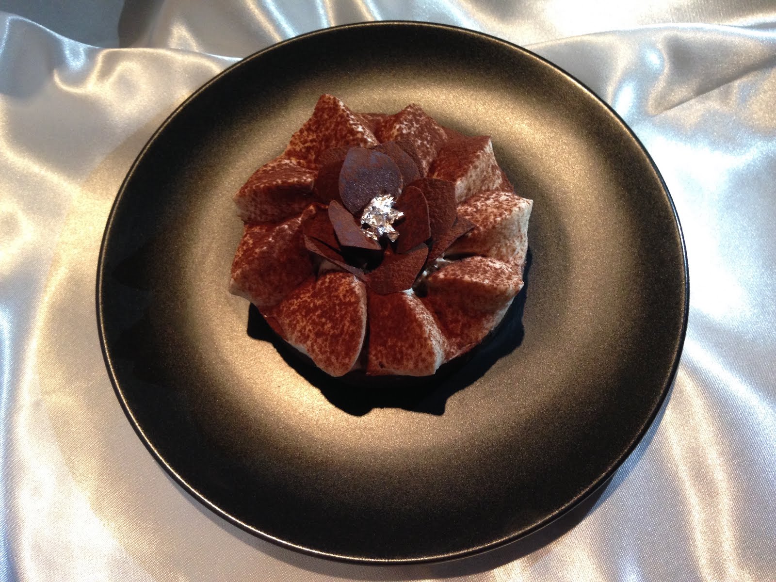 Disponete entro il guscio di frolla ( freddo) il biscotto Barozzi, quindi colatevi sopra della ganache rimanendo 3mm sotto al bordo della crostata. Con un sac à poche ed una bocchetta da Saint Honorè ( foto) create dei petali con la Chantilly; in alterantiva potete utilizzare una bocchetta liscia e fare dei semplici spuntoni. Completate il decoro con petali di cioccolato fondente, una spolverata di cacao amaro ed argento alimentare in fogli.