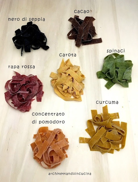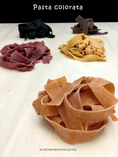 Ho una vera passione per la pasta all’uovo. Mi piace impastare, tirare la sfoglia con il matterello e mi diverto moltissimo a colorarla. La pasta all’uovo, si presta moltissimo a questo scopo, ma dato che per farlo utilizzo prodotti naturali, occorre fare attenzione agli abbinamenti, perché i coloranti rilasciano un sapore nella pasta che poi va armonizzato con il condimento. In questo post vi racconterò alcuni miei esperimenti sia di colori di pasta, che di condimenti.