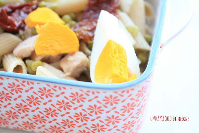Nel frattempo prepariamo in un contenitore il tonno (privato della sua acqua) e i pomodorini: li ho scelti sott’olio così sono ben saporiti e non c’è bisogno di aggiungere né sale, né olio! Però, se preferite, potete aggiungere quelli non sott’olio e, dunque, condire!