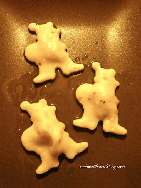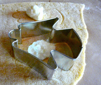 Nel frattempo frulliamo il salmone e il miele e utilizziamo il composto per farcire i nostri ravioli. Mettiamo piccole parti del composto sui nostri quadratini di pasta, sovrapponiamo ad ognuno un altro quadrato di pasta, schiacciando bene i bordi con i polpastrelli delle dita e poi chiudendo e ritagliando i ravioli con il coppapasta a forma di stella.