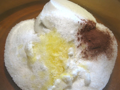 Porre la ricotta, lo zucchero, la cannella e la buccia di limone in una scodella e montare a crema con le fruste elettriche..