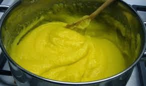 La polenta gialla é un cibo povero che per secoli ha sfamato le persone delle regioni del nord Italia , quando non c’era tutta questa abbondanza , antichissimo alimento ricavato dalla farina di mais macinata a pietra detta farina bramata che si versa a pioggia nell’ acqua bollente e si mescola per due ore fino al rassodamento e alla cottura .