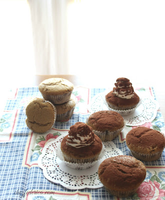 Riempiamo per ¾ gli appositi pirottini in carta e cuociamo in forno ventilato preriscaldato a 180° per circa 15 minuti. Facciamo raffreddare.