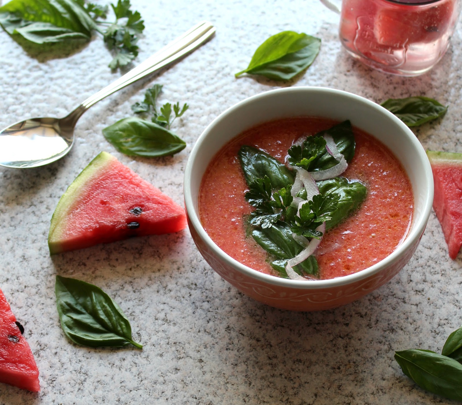 { Un gazpacho di anguria, siamo ancora in tempo per prepararlo. Una zuppa sana e gustosa totalmente vegan. Perfetta per un aperitivo con le amiche, tempo che il frullatore faccia il suo dovere. Un ora di frigorifero e stappiamo una corona. Una ricette perfetta per brindare, sorridere e sognare…}