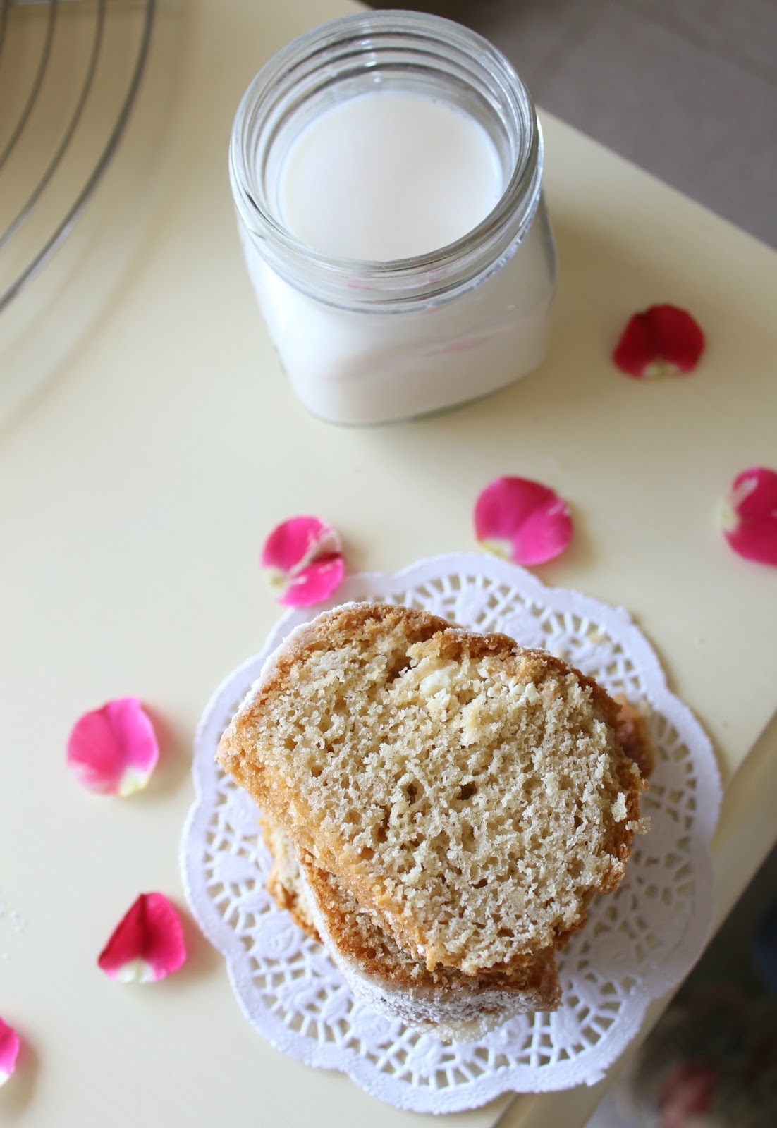 350 g di farina 00- 200 g di zucchero di canna – 3 uova – una bustina di lievito per dolci – 100 g di burro a pomata – 100 g di cioccolato bianco – 250 g di yogurt aromatizzato al caffè – una tazzina di caffè