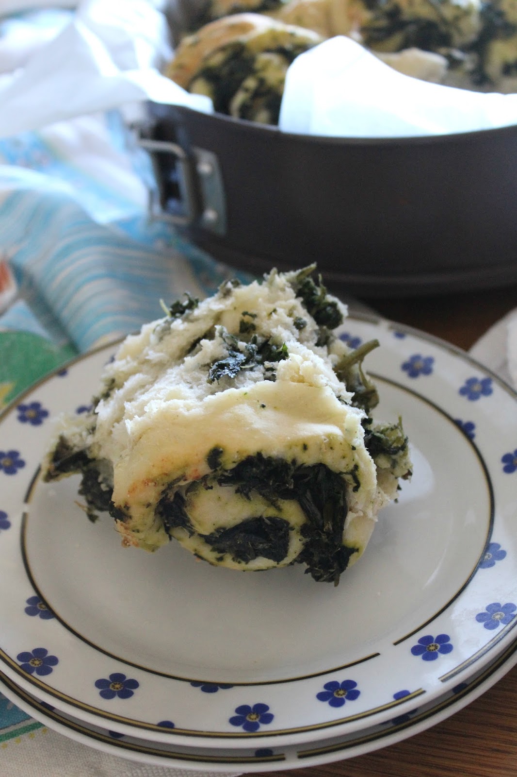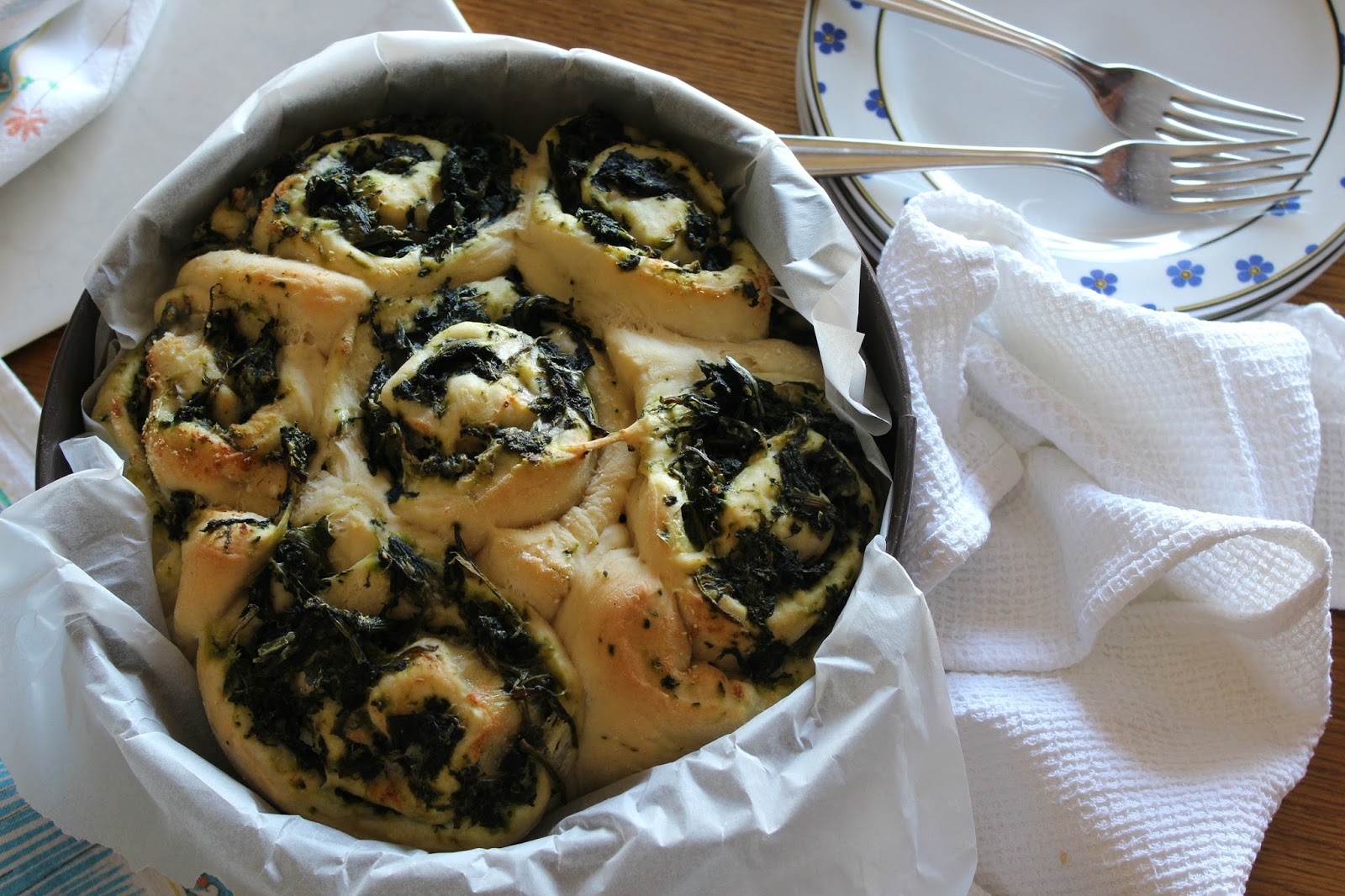 Una volta che l’impasto è lievitato, stendiamolo con il mattarello in piano infarinato, ottenendo così un rettangolo. Versiamoci sopra gli spinaci, raffreddati, e spolverizziamo la superficie con del parmigiano grattugiato. Ora, formiamo un rotolone per il lato più lungo, da cui andremo a ricavare 6 pezzi simili. Depositiamo l’impasto in stampo circolare da forno ricoperto di carta forno. Poniamo al centro il primo pezzo e a susseguire gli altri intorno ad esso. Lasciamo riposare per circa 20 minuti, sempre a forno spento. Infine, cuociamo la torta nel forno a 180° per circa 60 minuti. Controllare sempre, prima di sfornare, facendo la prova stecchino dove non c’è il ripieno. Sfornare e lasciare riposare su una gratella. Servire calda.