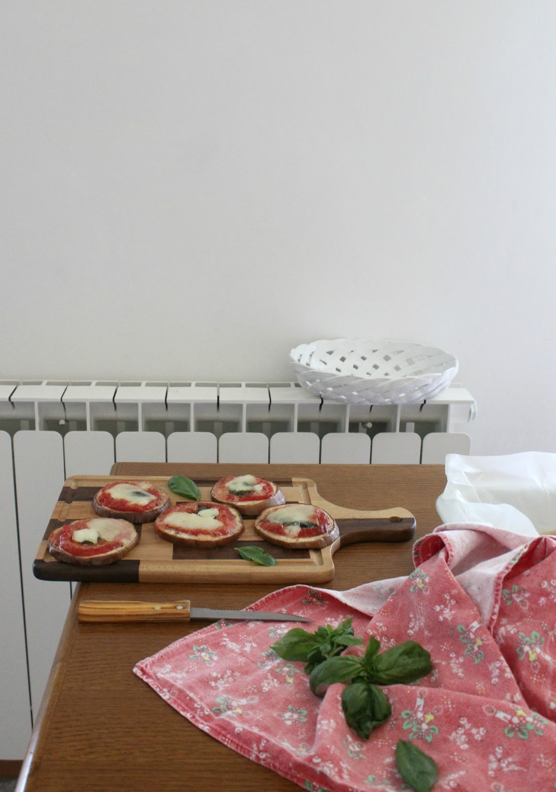 Una melanzana grande – passata di pomodoro – una mozzarella – basilico – olio extravergine di oliva – sale e pepe