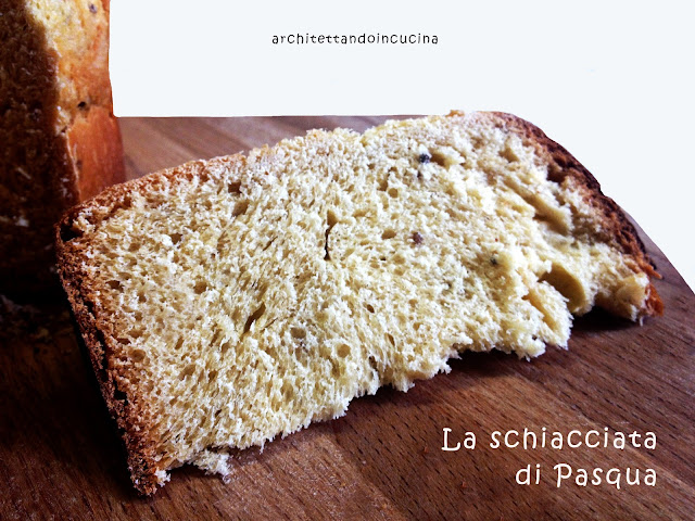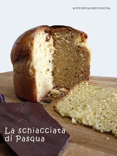 L’Artusi, la chiama “stiacciata alla livornese” (ricetta n°598 de “La scienza in cucina e l’arte di mangiare bene”), a San Gimignano la chiamano “sportellina”, a casa mia l’abbiamo sempre chiamata “schiacciata di Pasqua”, ma nonostante tutti qusti nomi, il dolce è sempre quello: un lievitato tipico del periodo Pasquale realizzato con molte uova. Il termine schiacciata, infatti, non deriva dalla forma bassa del dolce: tutt’altro, è alto come un panettone! E’ frutto del fatto che per la realizzazione occorre “schiacciare” tante uova.