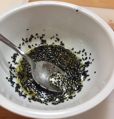 Si può condire con una salsa a base di miele, olio di semi di sesamo, aceto di vino e olio. La salsa si mette sulla carne e al momento di servire, si brucia con il cannello, così da avere un olio di semi di sesamo ancora più tostato.