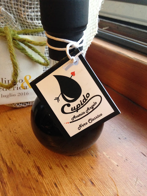 La figlia del padrone ci ha fatto assaggiare con gentilezza una varietà di aceti al cucchiaio, uno più buono dell’altro. Noi non abbiamo avuto dubbi e abbiamo scelto il “nero classico“, quello da mangiare con i formaggi per intenderci.