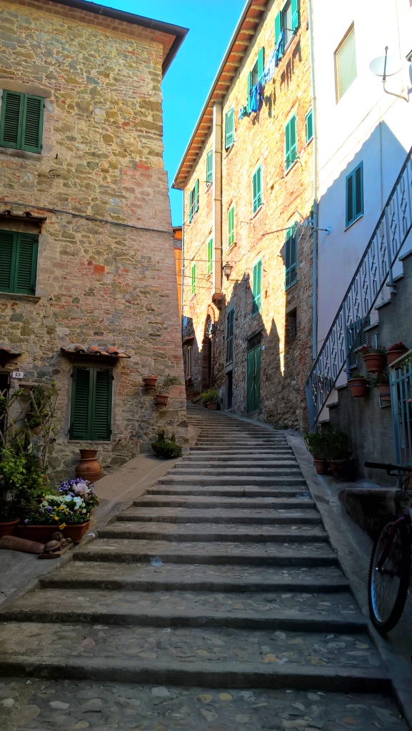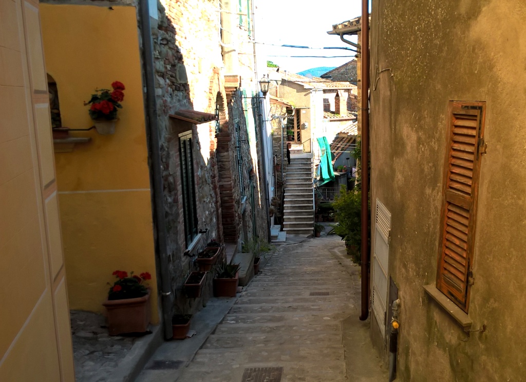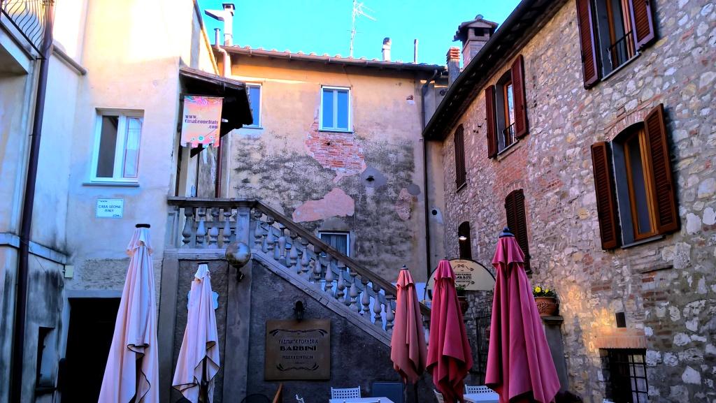 Parcheggiamo lungo la strada che da sinistra scende al lungolago ed accediamo al paese dall’antica porta, direttamente sul corso principale, su cui si affacciano graziosi negozietti di piccolo artigianato, caratteristiche botteghe di gastronomia locale, osterie e ristoranti tipici dove gustare le specialità di terra e di lago, tra cui le zuppe di cereali e legumi con la famosa Fagiolina del Trasimeno, la Chianina e il pesce lacustre cucinato in vari modi.
