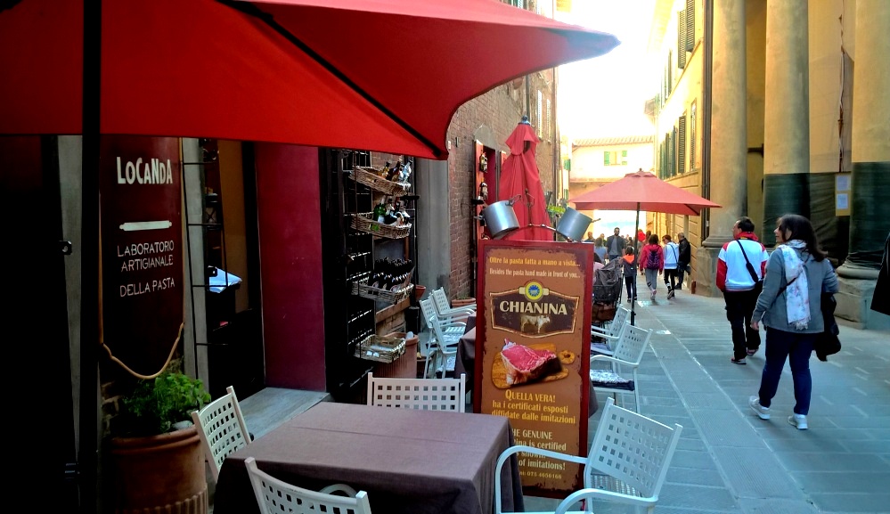 Attirati dall’invitante menù e dal buon profumino che arriva in strada, decidiamo di entrare al Ristorante “Monna Lisa”, in Via del Forte. L’interno è accogliente e le salette sono carine e ben apparecchiate. Ordiniamo entrambi la “Trilogia di Pici”, ossia i tipici spaghettoni toscani con tre diversi tipi di ragù: Anatra, Chianina e Maiale Cinta Senese. Molto buoni e ben conditi. Poi siamo passati direttamente ai dolci. Abbiamo preso una Panna Cotta con Mosto e Castagne dell’Amiata ed una Torta Ricotta e Pere composta da Pan di Spagna soffice, mousse di ricotta, pere caramellate alla cannella, guarnita con tanti filetti di mandorle tostate sulla superficie. Buonissimi entrambi, specialmente la Ricotta e Pere. Peccato che nella foga di assaggiarli ho dimenticato di fare le foto! Giudizio sul Ristorante: Buono; prezzi nella media (conto sui 38 €); esperienza da ripetere per provare altre specialità.