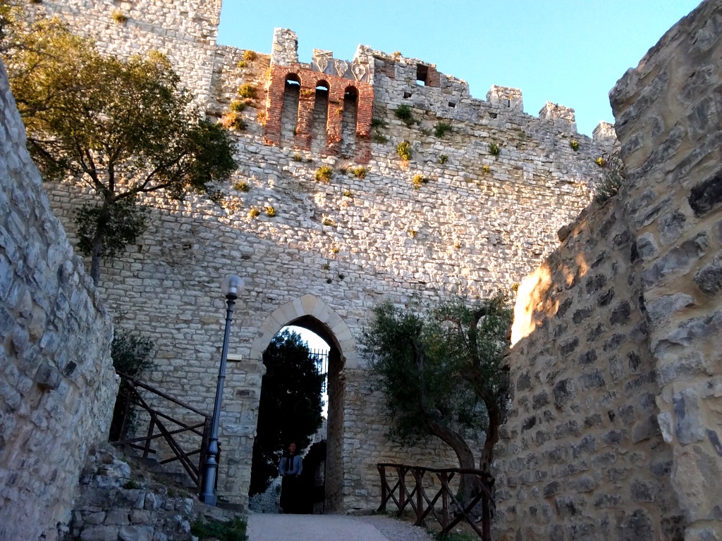 Quindi si giunge alla Rocca del Leone, realizzata nel 1247 per volere di Federico II di Svevia, così chiamata per via della sua forma pentagonale, ispirata alla costellazione del Leone. Dalla rocca poi ha preso il nome l’intero borgo. Infatti “Castiglione” deriva da “Castellum Leonis” trasformatosi poi in “Castellioni”. Un lungo passaggio collega il Palazzo Ducale con la Rocca, formando un unico suggestivo complesso. Peccato essere arrivati tardi, ma sarà l’occasione per tornare a visitare più approfonditamente questo splendido borgo. Si può, comunque, accedere al parco del castello, dove è stata ricavata anche un’arena per spettacoli.