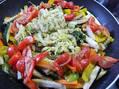 ricoprire con le verdure preparate e formaggio grattugiato,