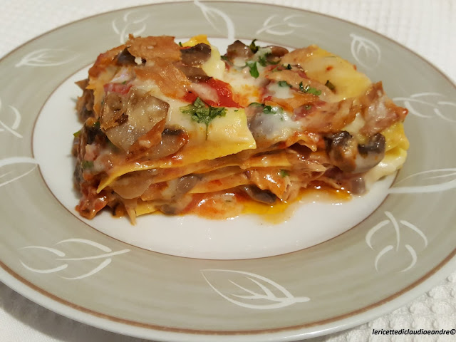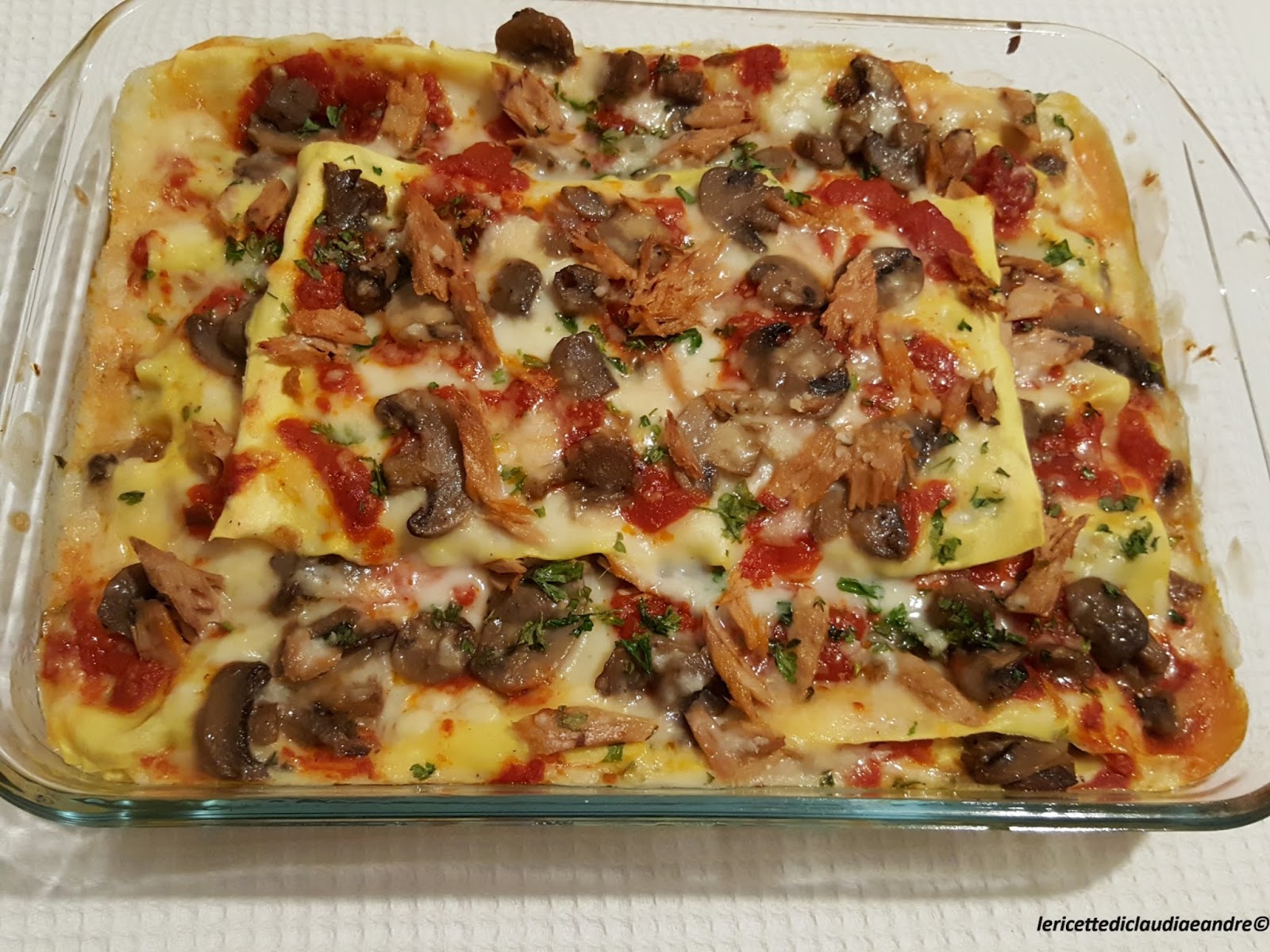 Lasagna con funghi champignon, tonno e besciamella leggera