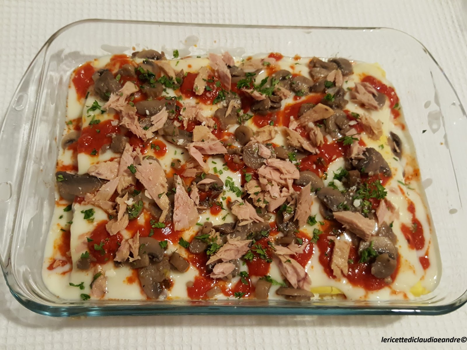 Lasagna con funghi champignon, tonno e besciamella leggera