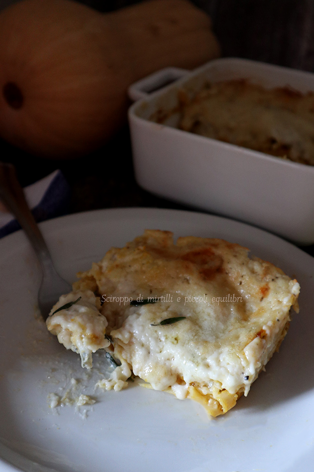 Apro la stagione della zucca sul blog con una classica lasagna condita con zucca ridotta in purea e gorgonzola, il tutto ricoperta da besciamella. Una coccola calorica, ma molto buona.