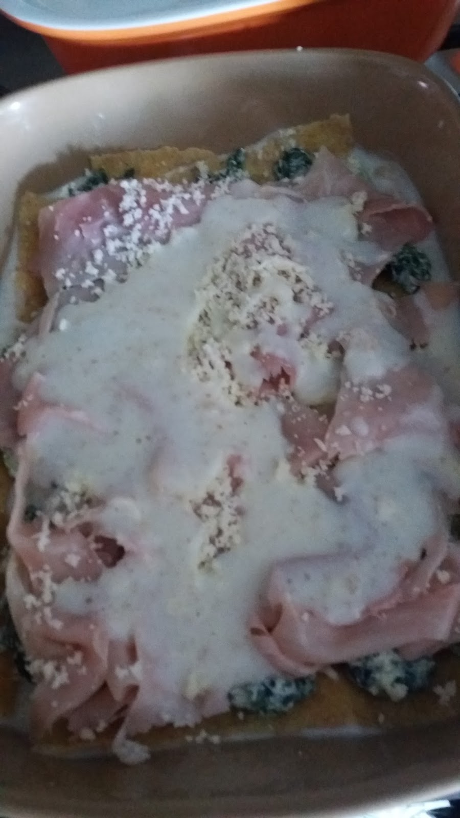 e iniziate a farcire con ricotta e spinaci ,prosciutto ,trito di fiordilatte e cucchiaiate di besciamella,