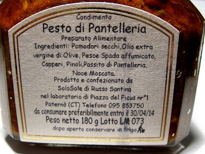 Ho previdentemente fotografato anche il retro del barattolo in modo che leggendo gli ingredienti si possa cercare di ricreare in modo casalingo sia questo che l’altro pesto che appare qui sotto..