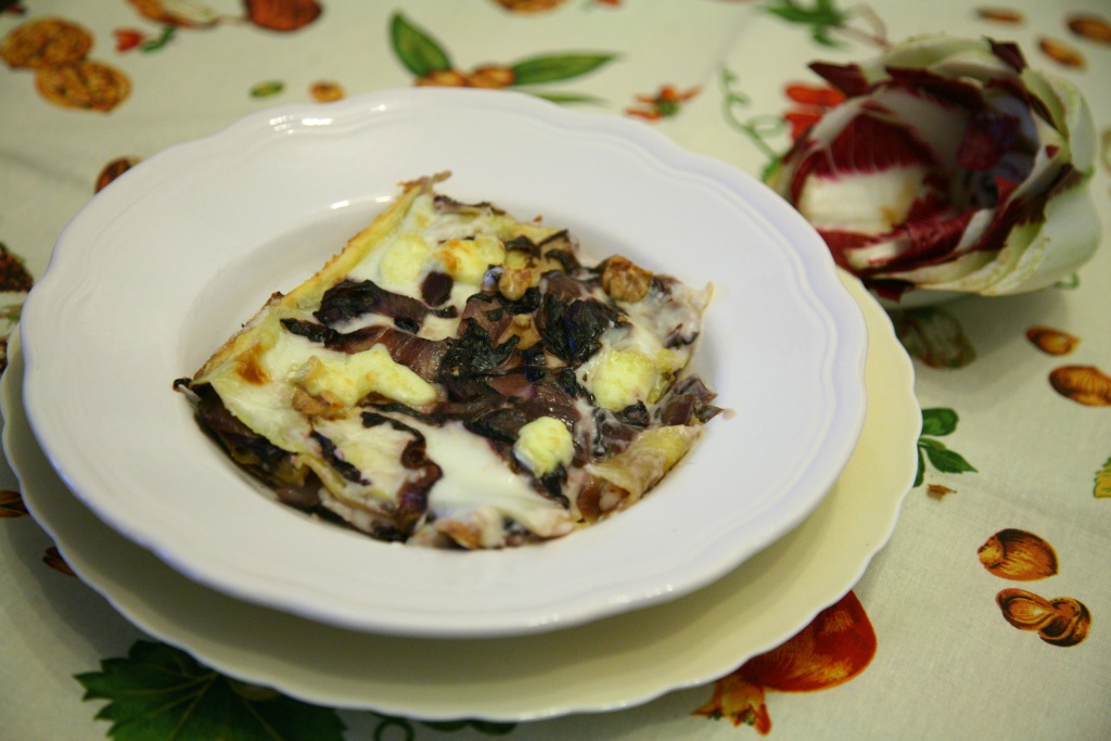 Le lasagne al radicchio – ad esempio – sono un’alternativa golosa alle classiche lasagne al ragù, inoltre aggiungendo il brie diamo al piatto una nota cremosa particolare. e per un po’ di croccantezza ho aggiunto le noci.