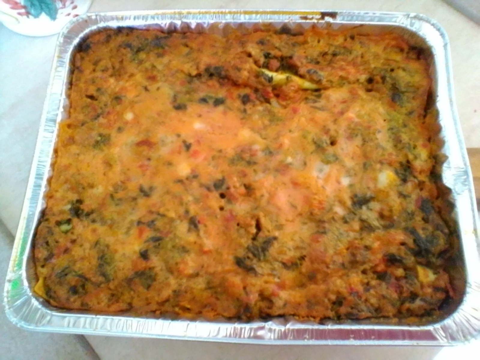 Infornate a 200° per 20/30 minuti a tortiera coperta con carta forno. Gli ultimi minuti togliete la carta e fatr gratinare. Lasciate intiepidire le lasagne prima di servirle, in modo che si insaporiscano.