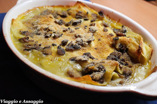 Versate uno strato di besciamella sulla teglia, adagiate sopra una sfoglia di lasagna, quindi i funghi cotti, ancora besciamella e altra sfoglia di lasagna. Continuate fino ad esaurimento degli ingredienti.