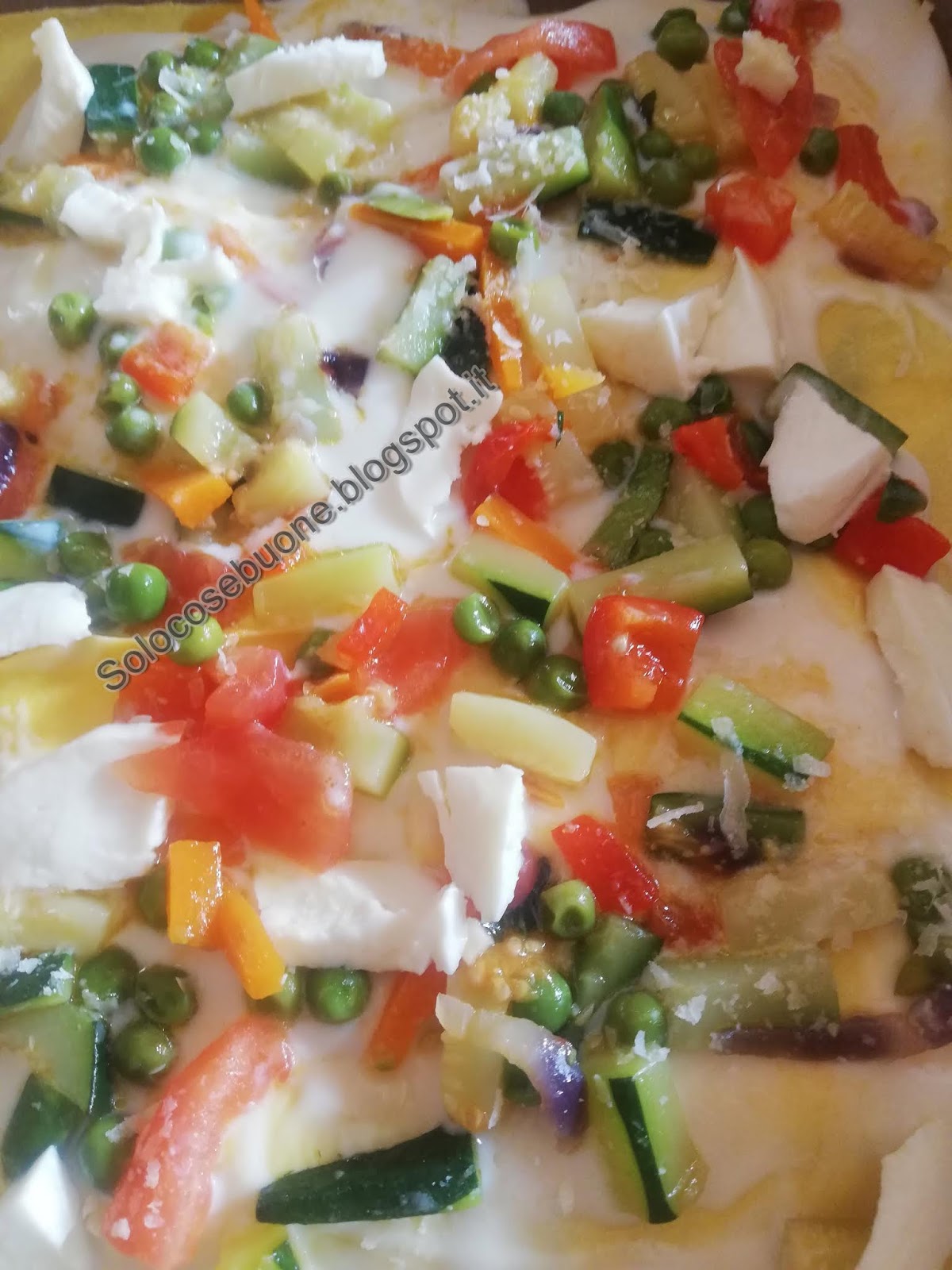 Copriamola con le verdure, il basilico , un ulteriore cucchiaio di besciamella, parmigiano e pezzi di mozzarella. Procediamo in questo modo fino alla fine di tutti gli ingredienti.