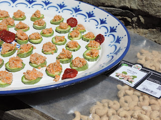 Tenere in ammollo in acqua gli anacardi per qualche ora. Frullarli con poca acqua dell’ammollo con le carote, un pizzico di sale, qualche foglia di basilico ed un po’ di timo. Tagliare in strisce sottili le zucchine e distribuirle nelle coppette, aggiungere la crema di carote. Aggiungere altre fette di zucchine ed un po’ di crema. Decorare con pomodori, basilico e timo.