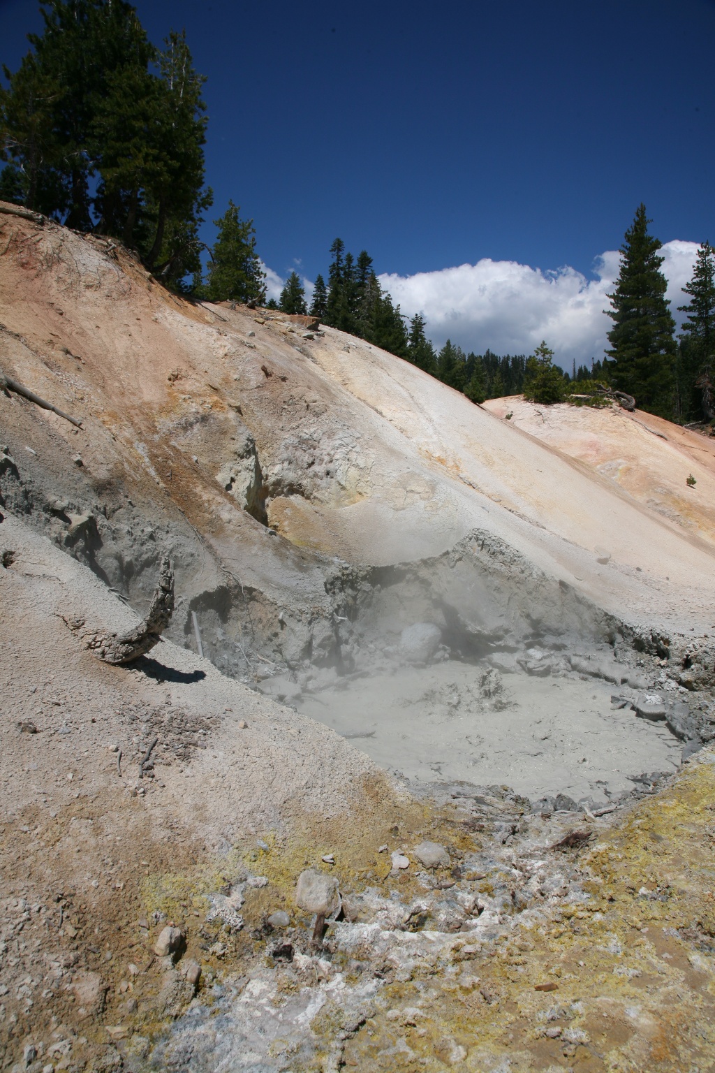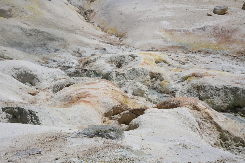 La pozza più grande è circa 1,5 m e si trova proprio accanto al sentiero: qui i vapori salgono al cielo e minerali argillosi creano sfumature di giallo, arancione e rosso sulla roccia nuda.