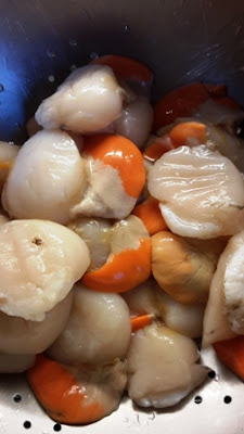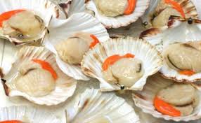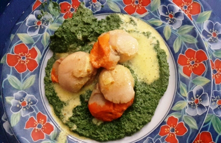 Le capesante anch’esse scaldate un istante e velate con la salsa allo zafferano…