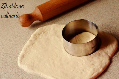 Riprendere l’impasto, con l’aiuto del mattarello formare una sfoglia di circa 1 cm di spessore, tagliare con un coppapasta o un bicchiere.