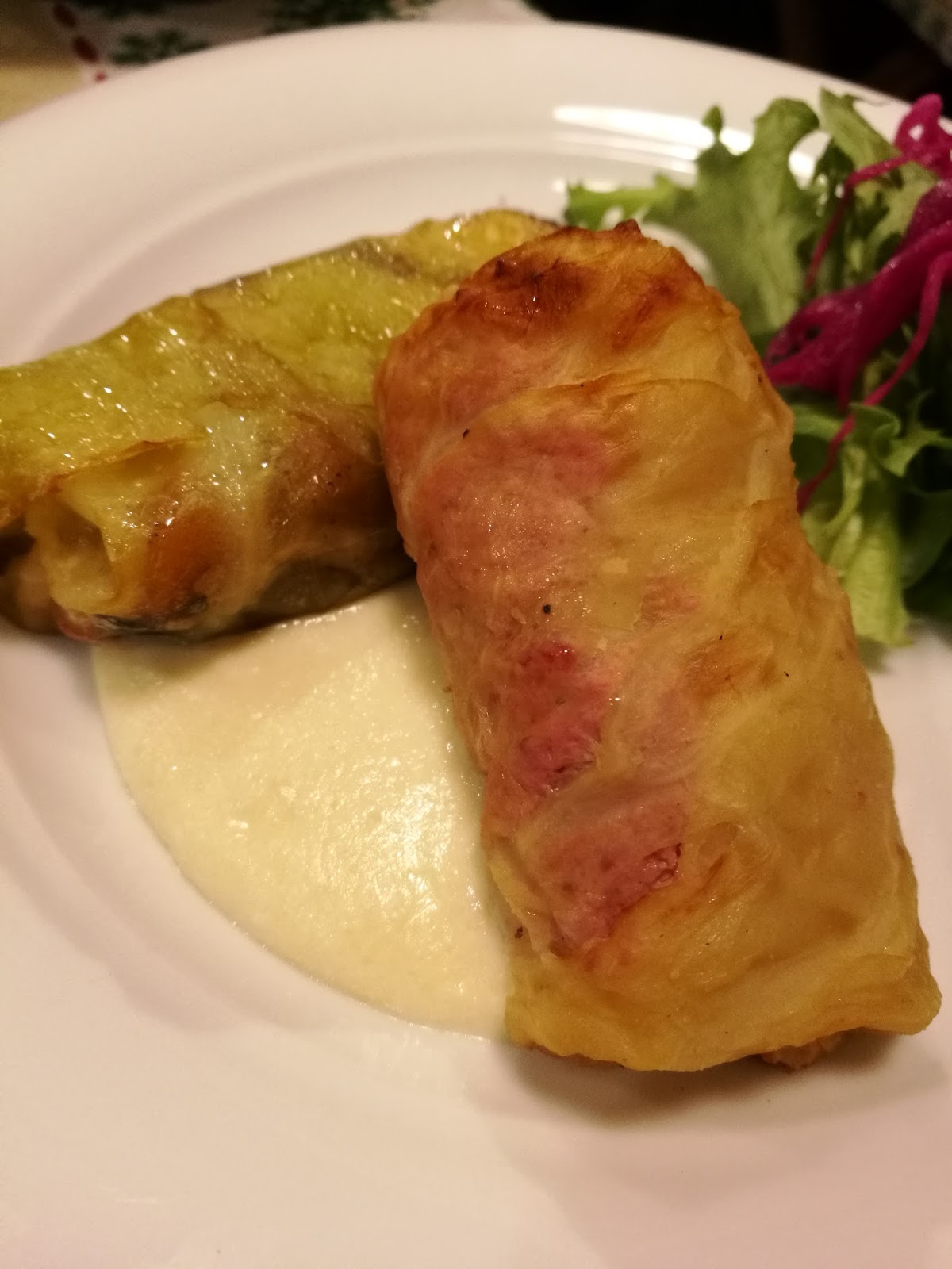 Ci siamo concessi poi un altro antipasto, degli “involtini di verza su fonduta di formaggio“