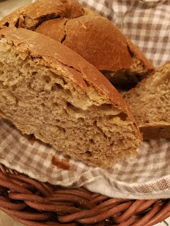 Il pane rustico scuro saporito e croccante viene preparato quotidianamente con una miscela di diversi tipi di farine.
