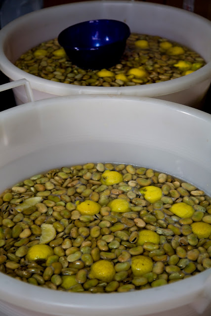 Si tengono a bagno per una notte (come si fa con i legumi secchi) e poi si lessano in abbondante acqua con una foglia d’alloro, per circa due ore. Il sale si aggiunge a metà cottura. Quando saranno morbide, si scolano e si servono con il pinzimonio .