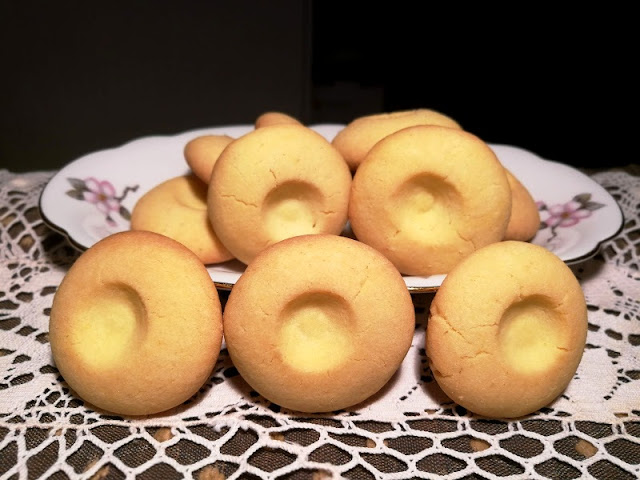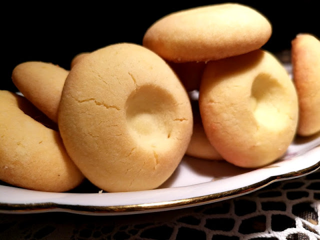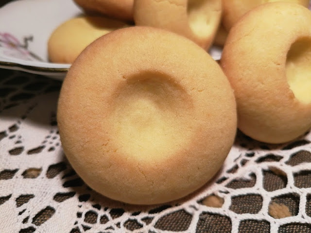 Per formare la fossetta avrei dovuto usare il pollice ma il biscotto era piccolo e la punta del mio pollice …più grande in proporzione.