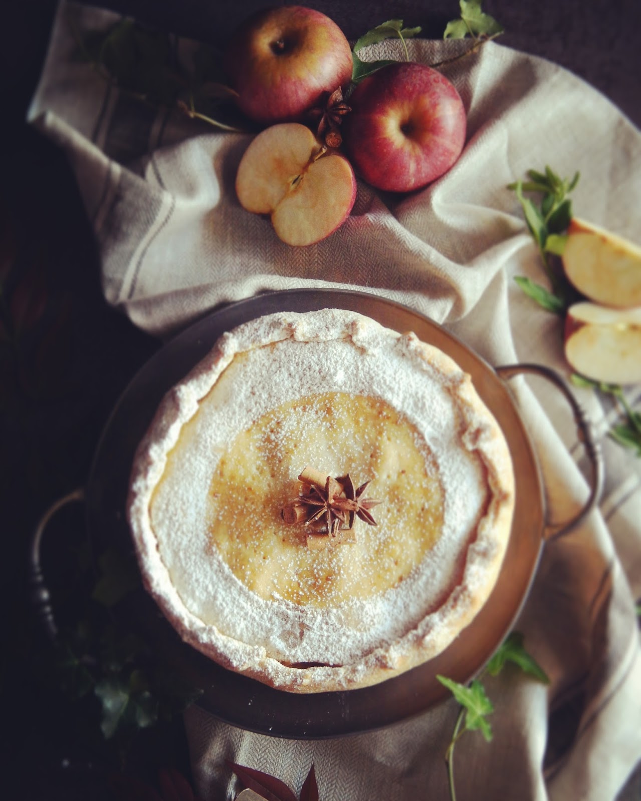 Doppio strato di pasta brisè a racchiudere tante mele tagliate grossolanamente.