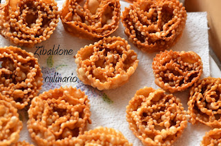Una volta asciutte, friggere le cartellate in abbondante olio ben caldo, finché la superficie non sarà dorata e scolare e posizionare su carta assorbente da cucina.