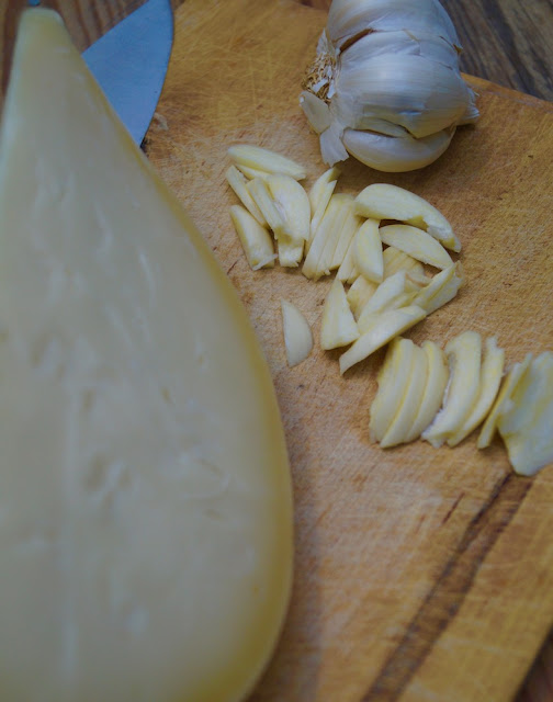 Tagliate a listarelle il formaggio che non tenterete di sostituire con parmigiano o altro ; perché il risultato cambia ;