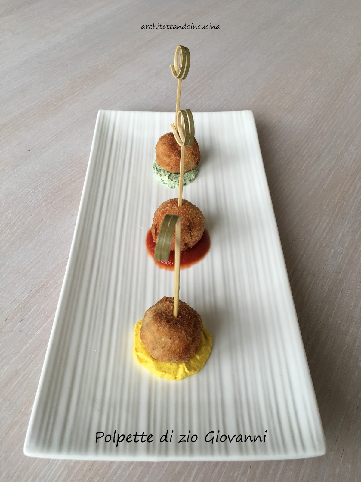 Per servirle come finger food, l’ottimo è servirle con delle salse: in questo caso 1) crema di yogurt al curry 2) ketchup fatto in casa 3)crema di yogurt alla rucola.